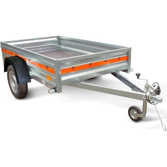 Dotato di gancio traino standard da 50 mm (a sfera), sistema di frenata a inerzia, luci a LED e portellone posteriore pieghevole, garantisce sicurezza e praticità.